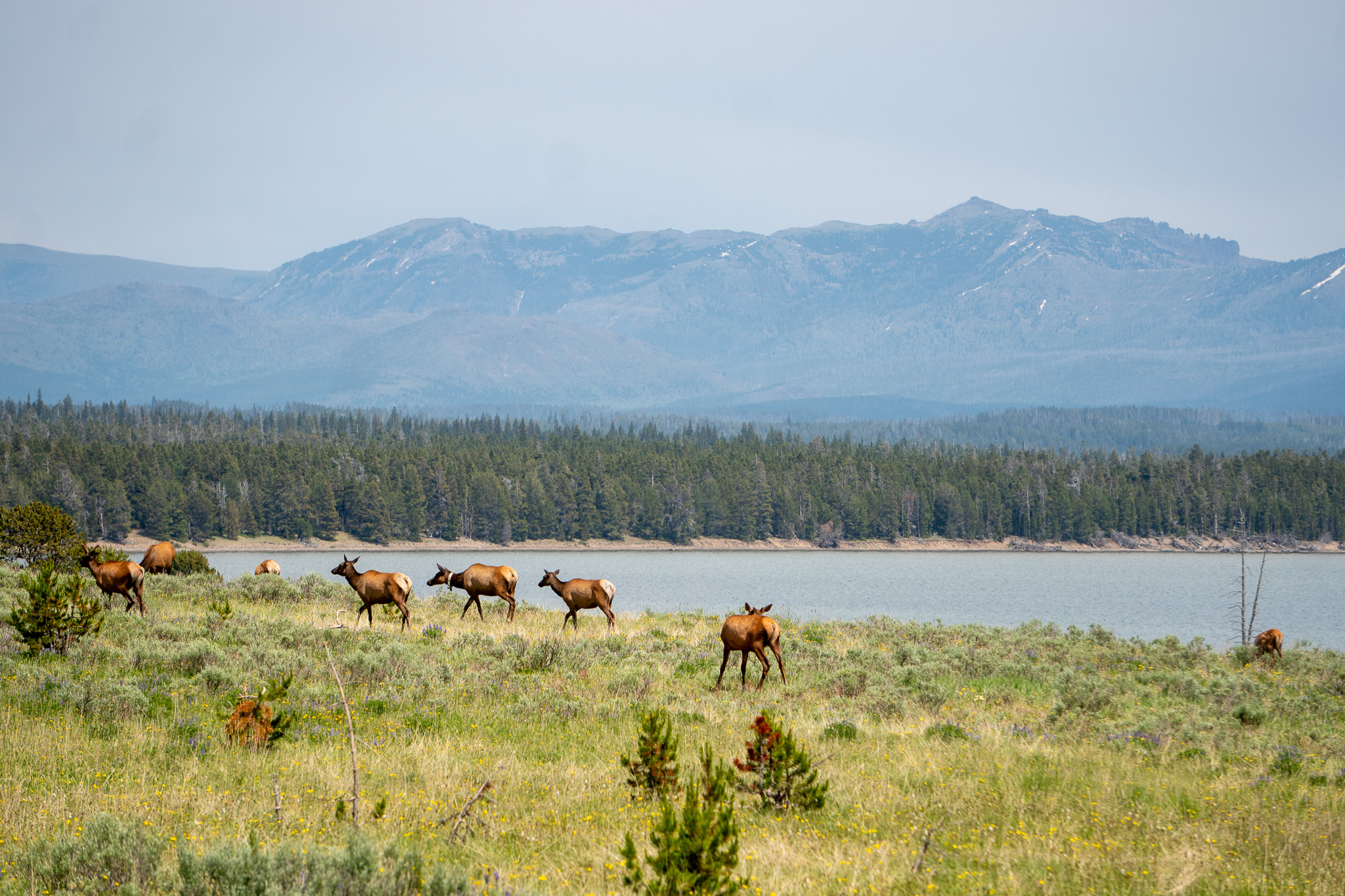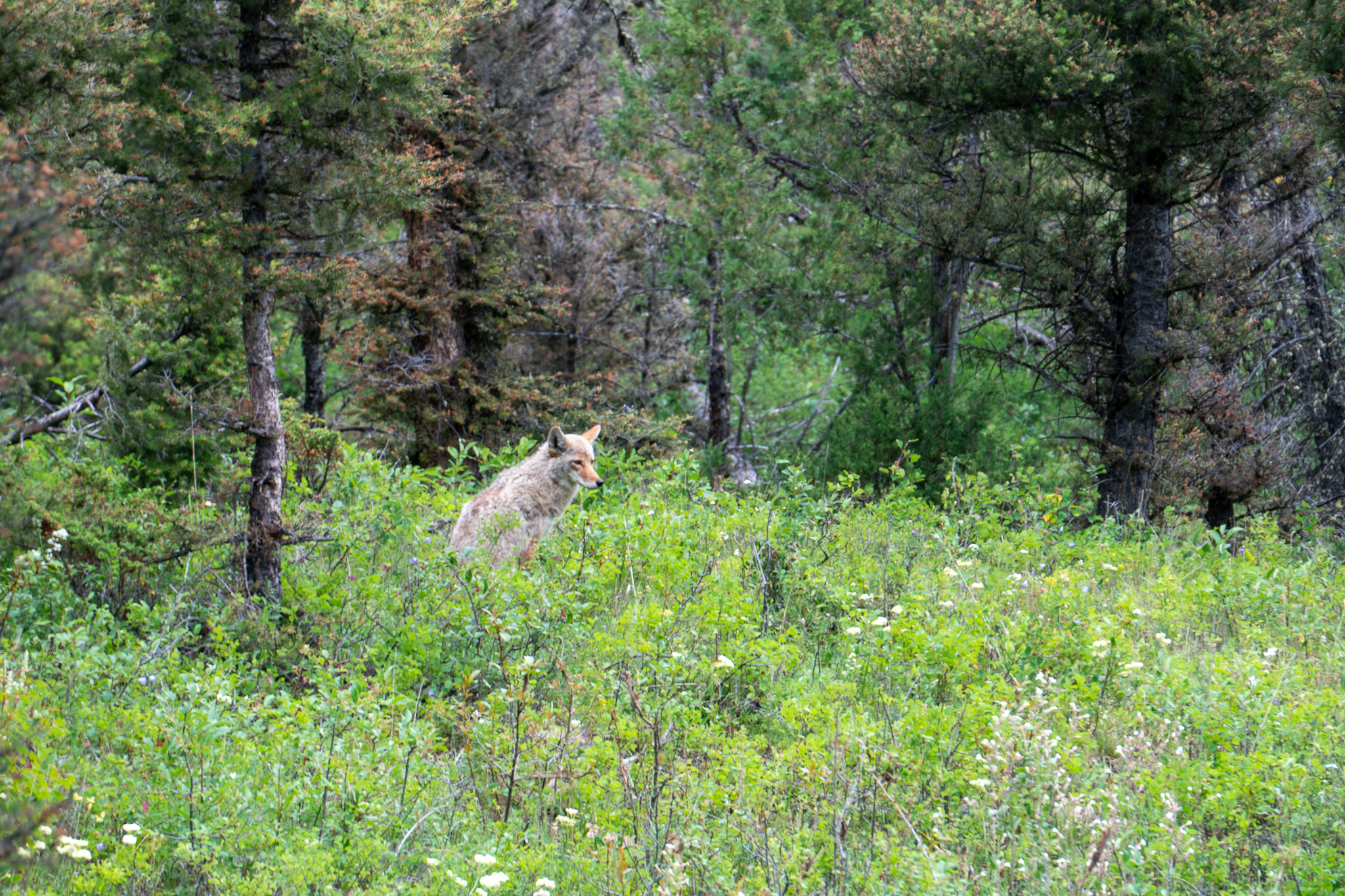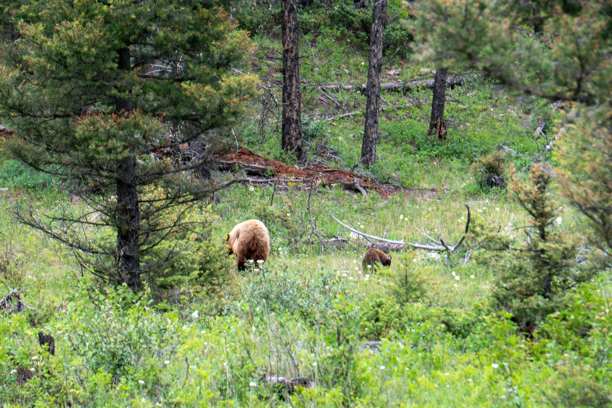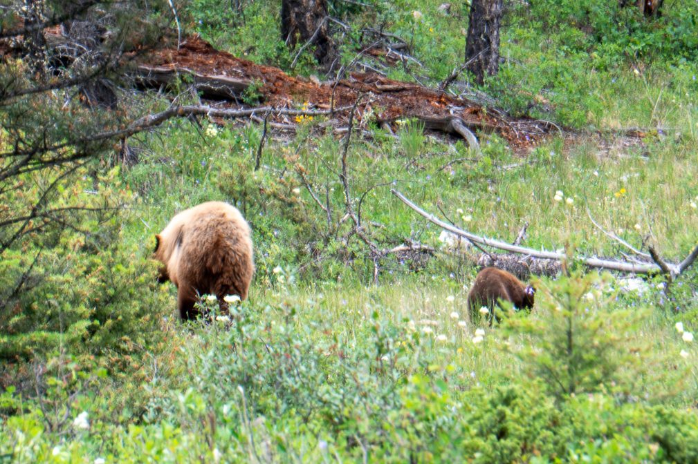 Thursday, July 3rd started our wildlife education. We got into the park early that morning, and within the first hour, we saw something that still makes our hearts race. A mama black bear with her cub, being watched by a coyote.