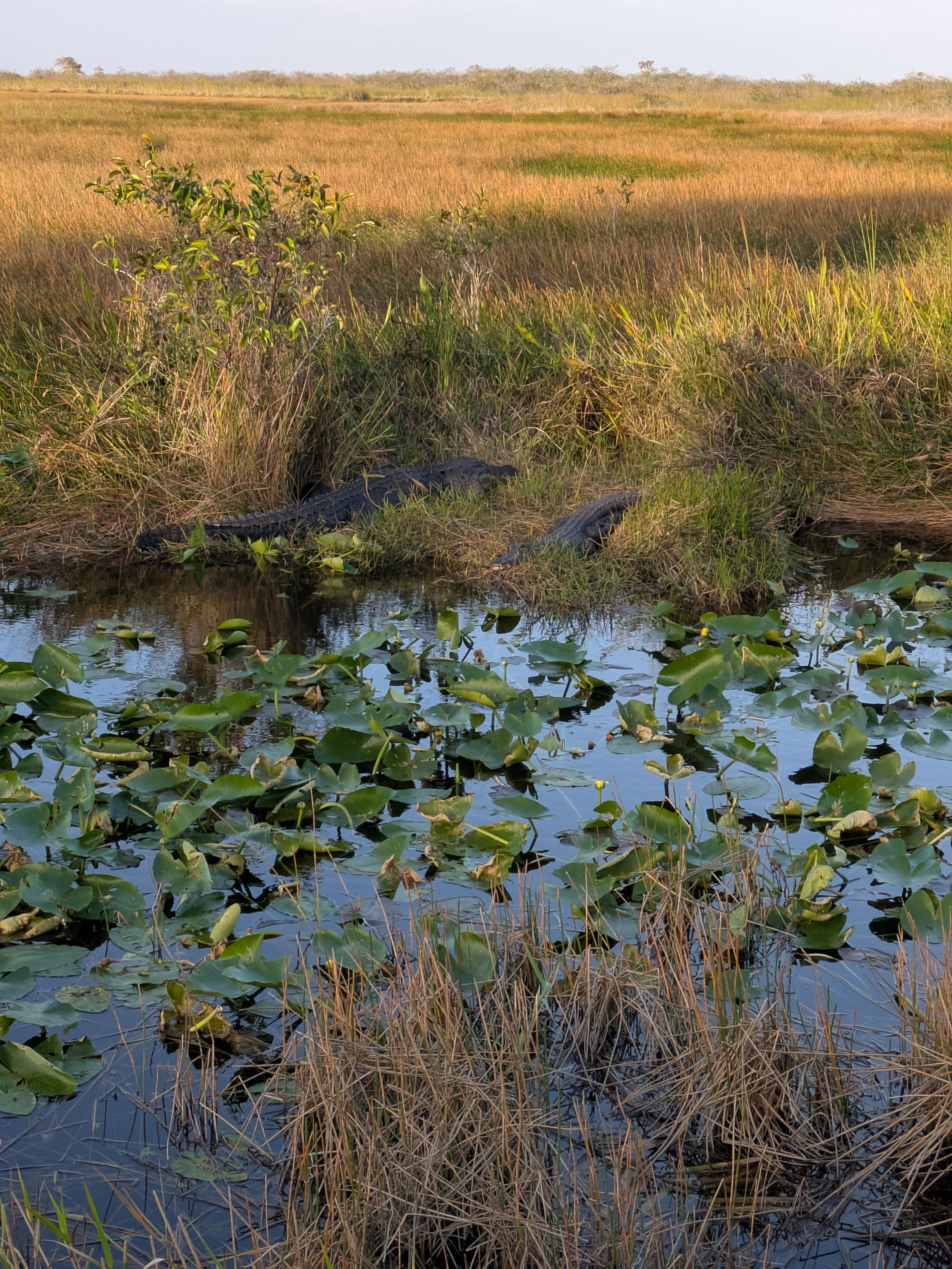 We hiked the Anhinga Trail as the sun started getting lower in the sky, and even in that short window, we saw so much wildlife. Alligators sunning themselves on the banks, birds everywhere (herons, egrets, anhingas drying their wings), turtles sliding into the water, fish darting through the shallows. The Everglades are teeming with life in a way that feels almost prehistoric.