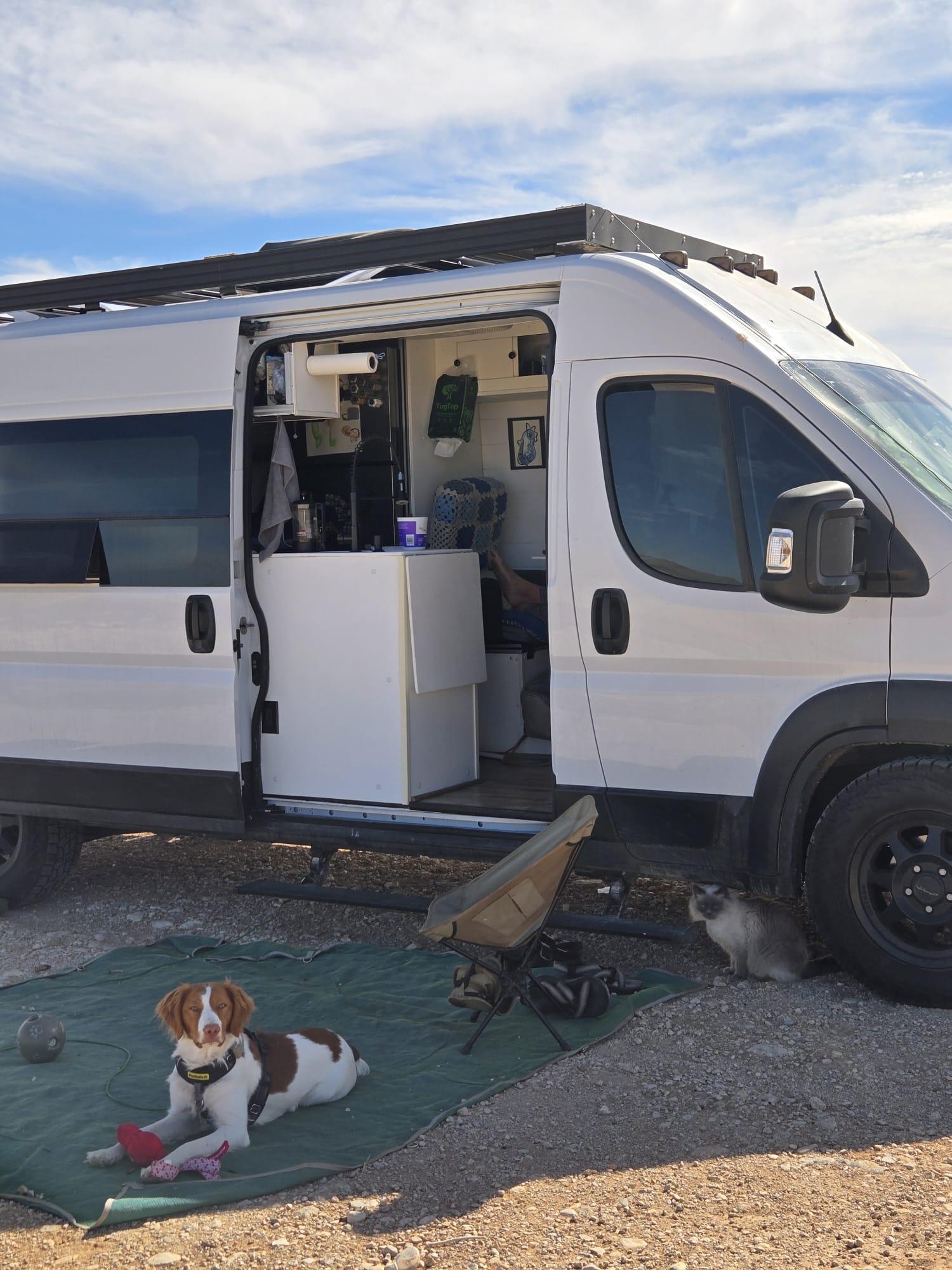Let’s be real about Chosa for a second. It is a big open parking lot with no amenities. No hookups, no bathrooms, not even a porta-potty. What it does have is a trash can, and at this point in van life we have learned to celebrate the small wins.